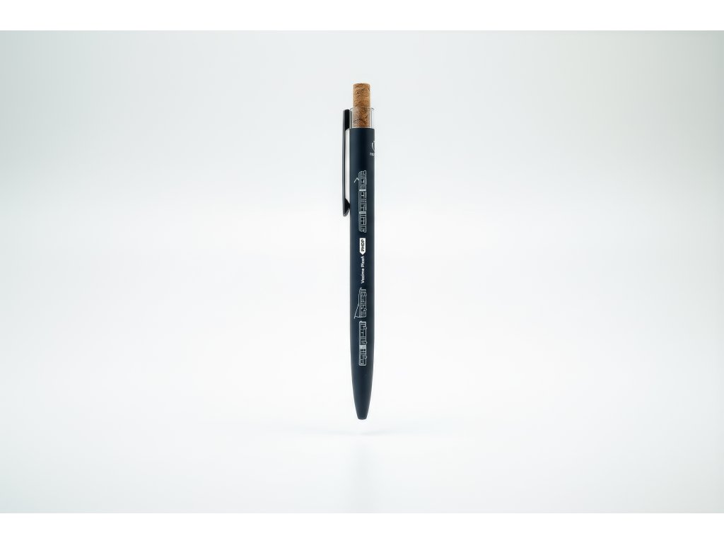 Elegantní propiska s jemným potiskem vozidel PMDP a korkovým detailem.